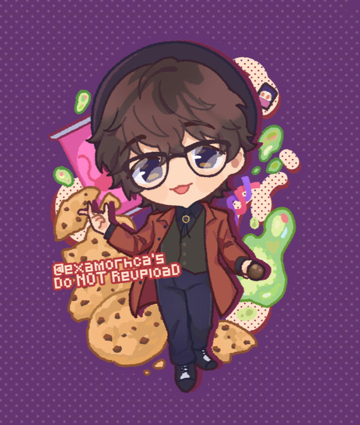 Decorative ChibiIllustration of 1 chibi character with decorative backgrounds