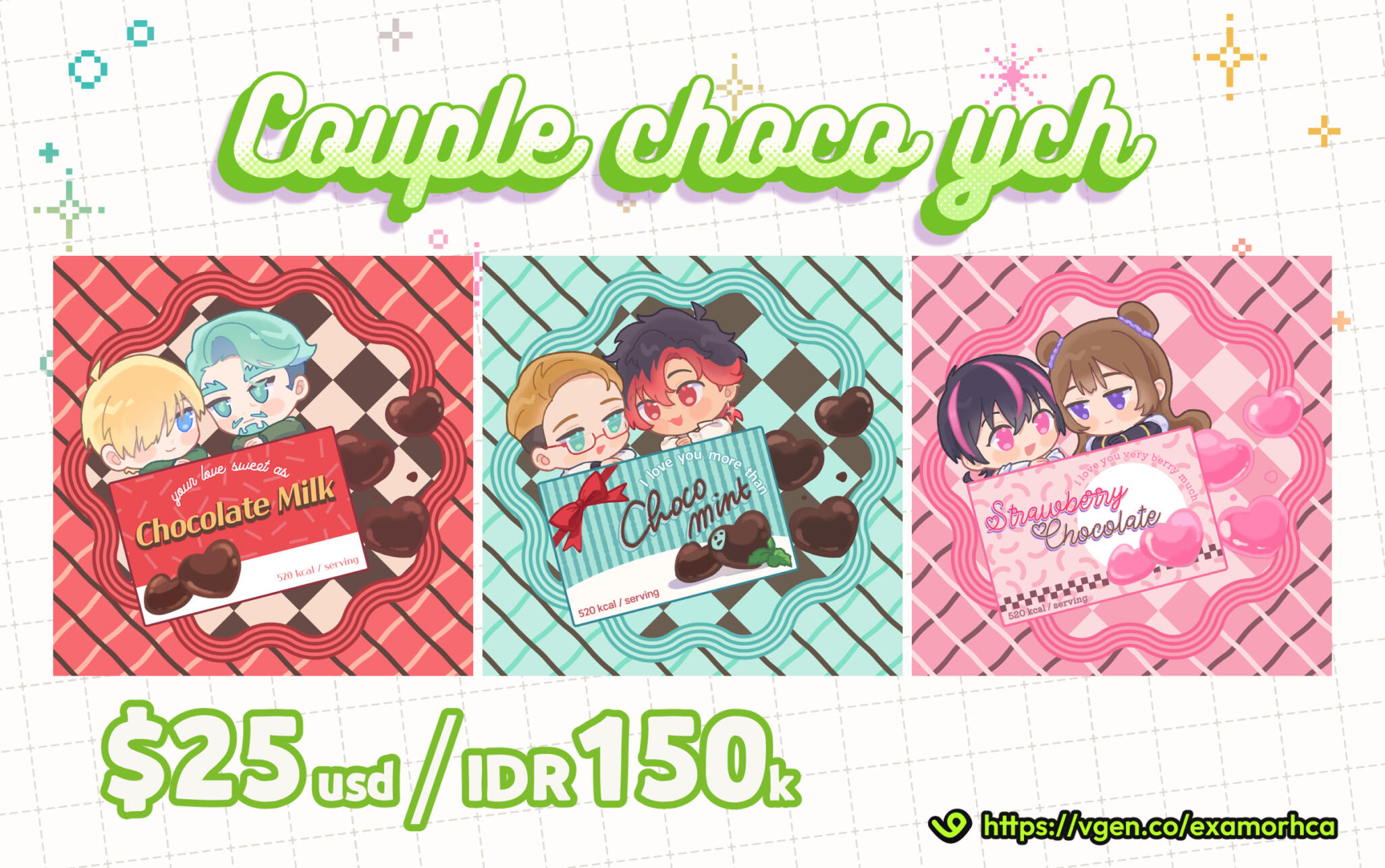 Couple Choco YCH- 2 characters, Come with 4 choices of premade background (pick one)
