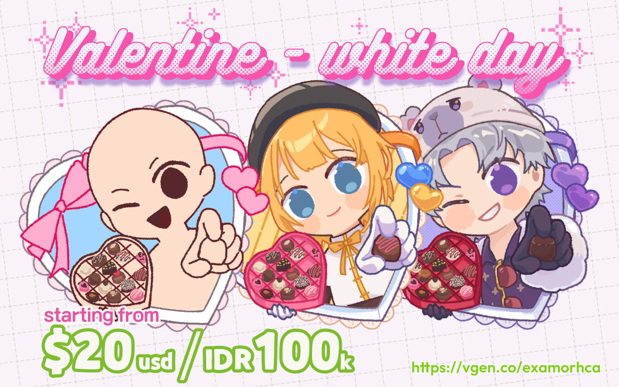 Valentine - White day YCH- 1 character, free customisation on ribbon color and chocolate box color