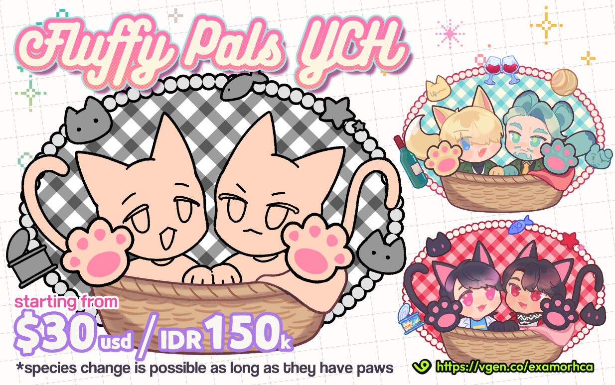 Fluffy Pals YCH- 2 characters, free customization on background colors, simple decoratives modification, species changes are also possible as long as they have paws.
